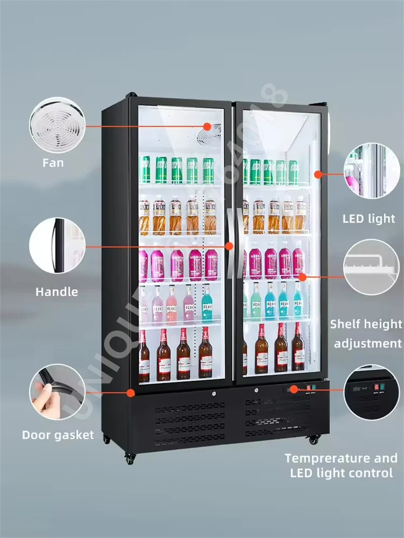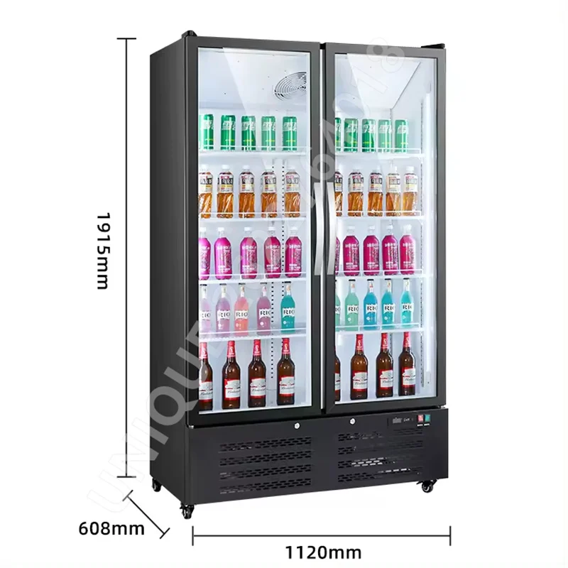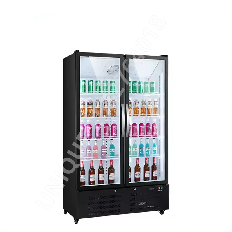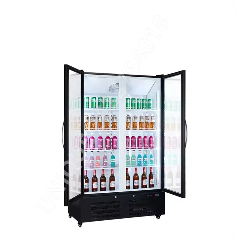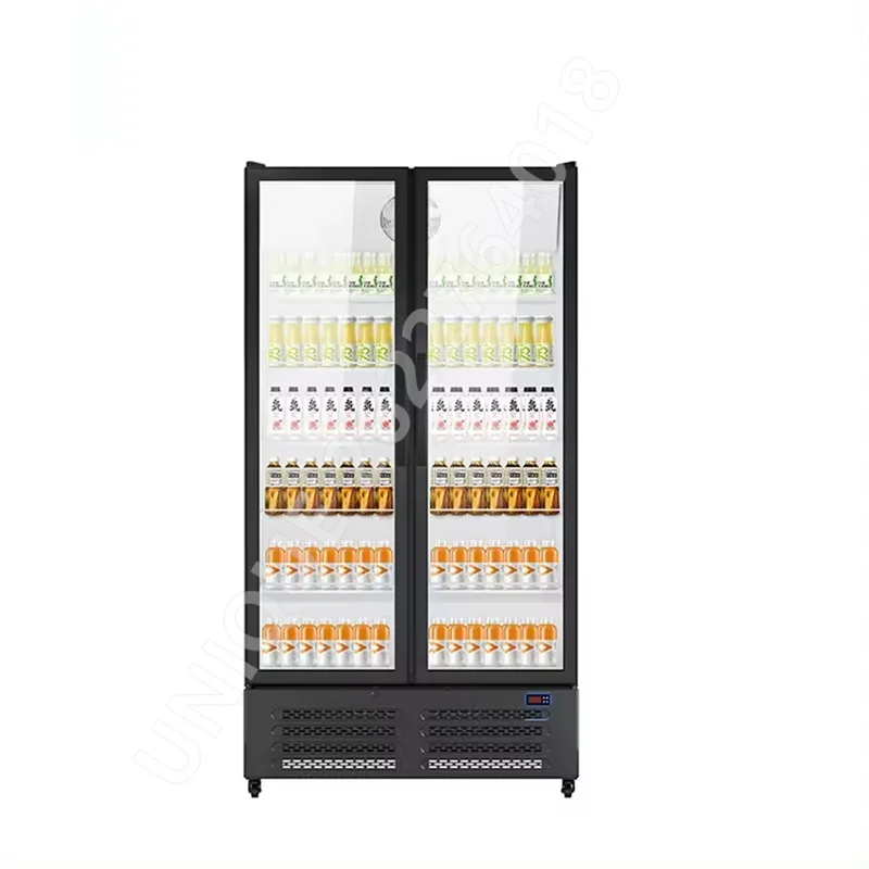 220V Large Capacity Supermarket Convenience Store Beverage Cabinet Beer Vertical Double Door Refrigerator Commercial