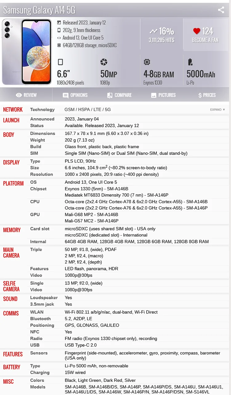 - Samsung Model: A14 5G A146U